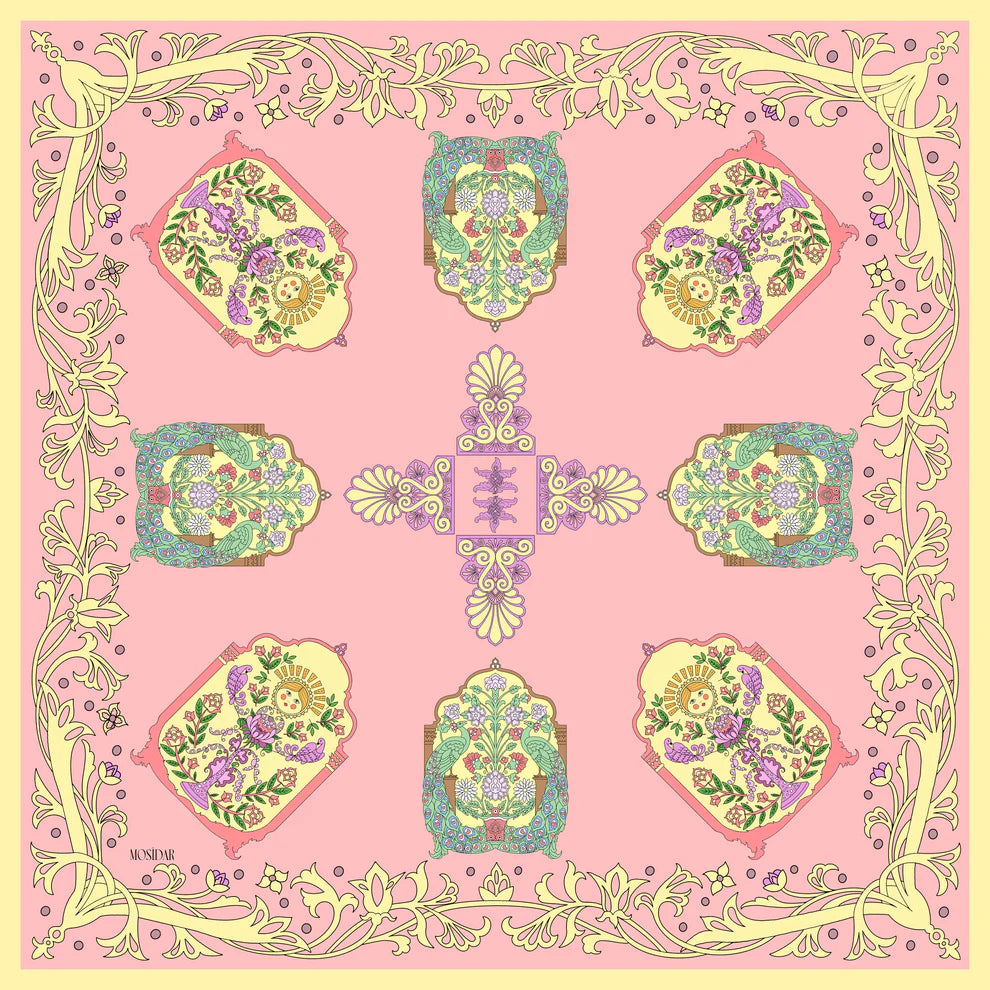 Bathed in warm apricot tones, this 90x90 cm scarf draws on Slavic mythology with intricate siren and floral motifs framed by ornamental borders. Crafted from 100% vegan silk (rayon) and finished with hand-rolled edges, it’s a statement of elegance and storytelling. Gentle hand wash or dry clean recommended.