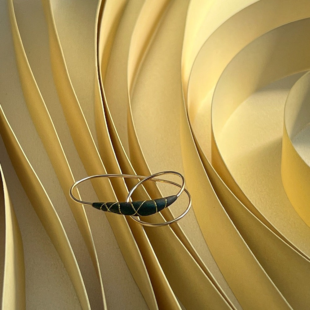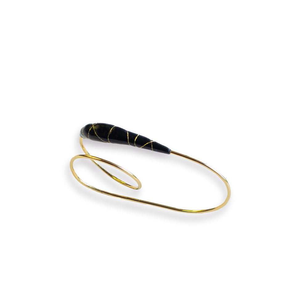 MALZEMELER | Mikron altın kaplama tel ve siyah polimer kil. Polimer kilin içine altın sırma gömülü.