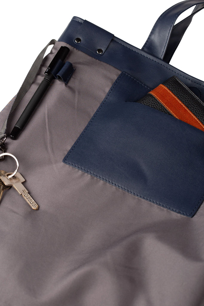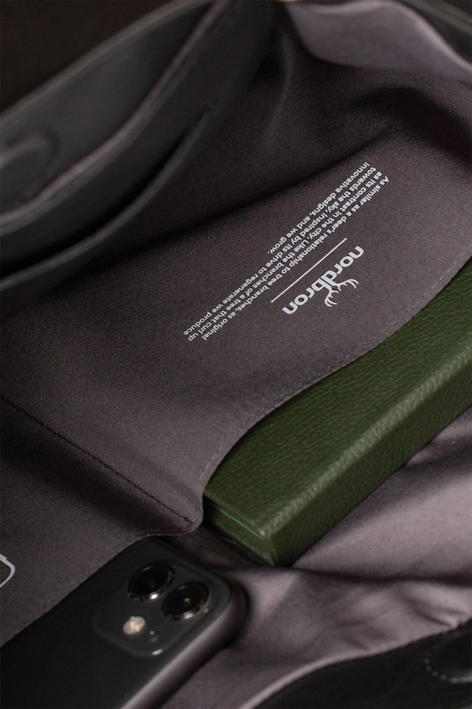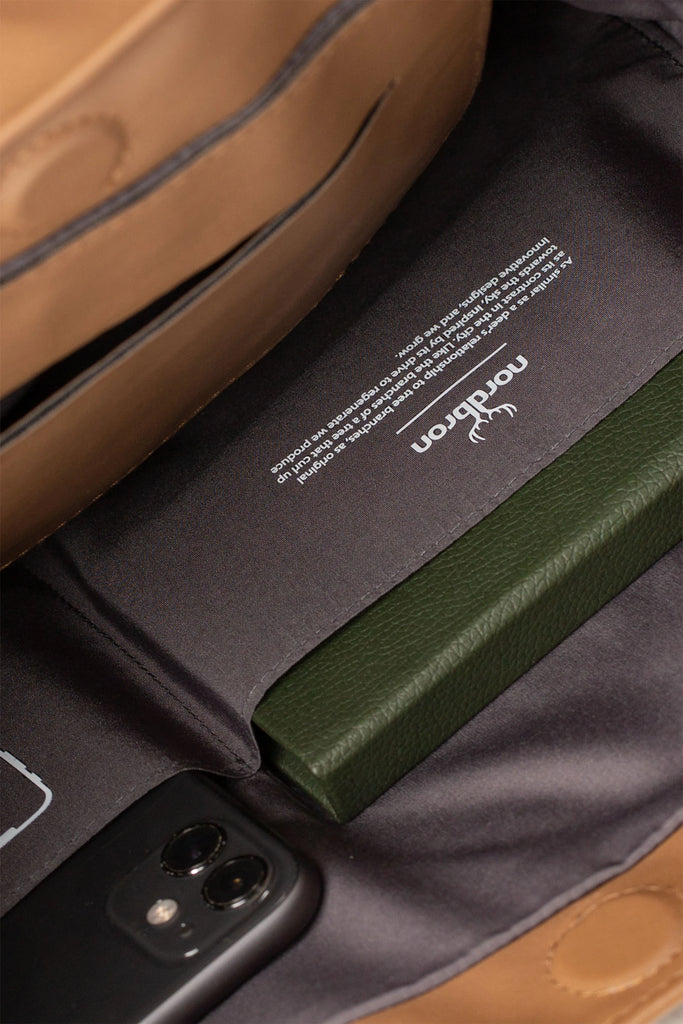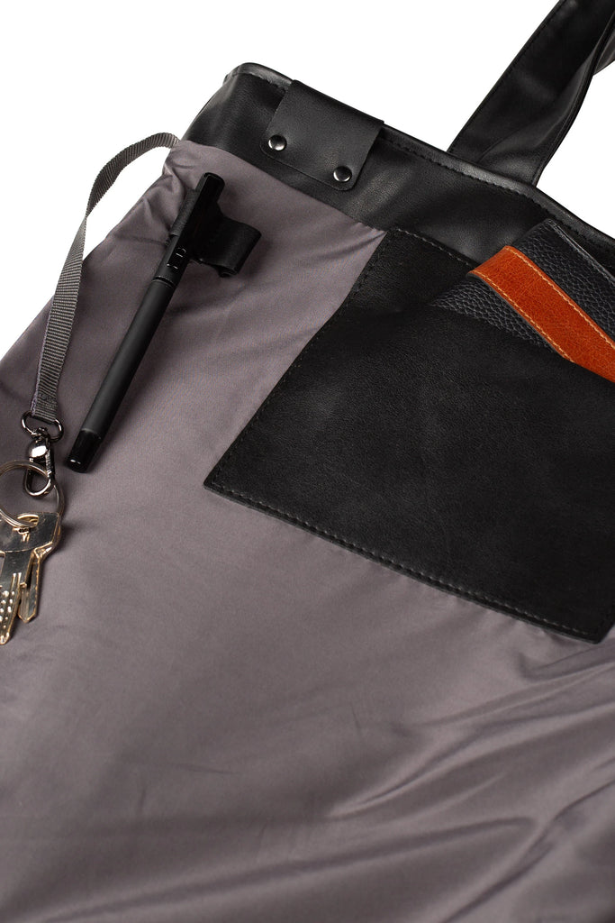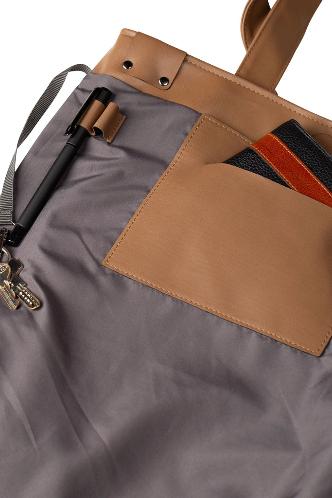 İç bölmede deri ve astar kumaşından cepler