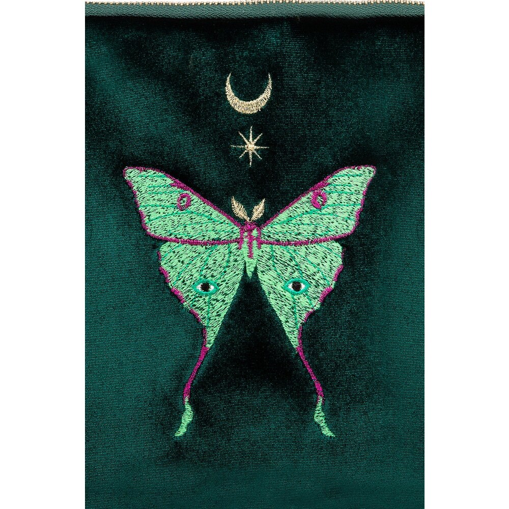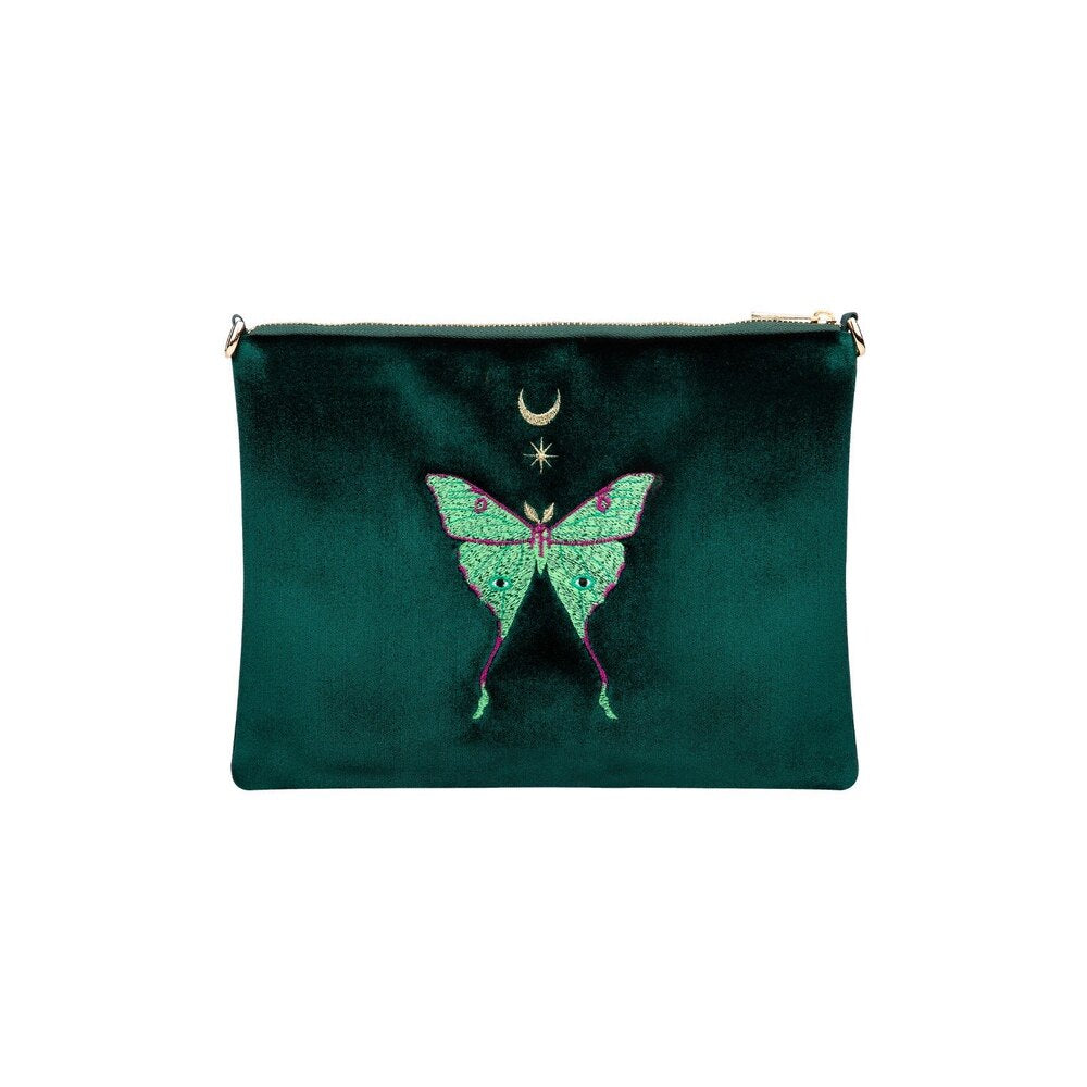 Kadife üstüne nakış detaylı clutch çanta. Çıkarılabilen gold çelik zincir detaylı.