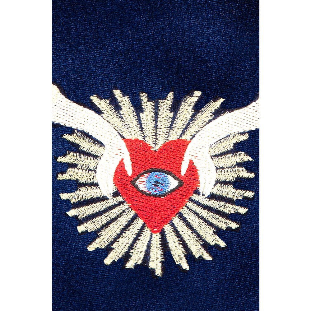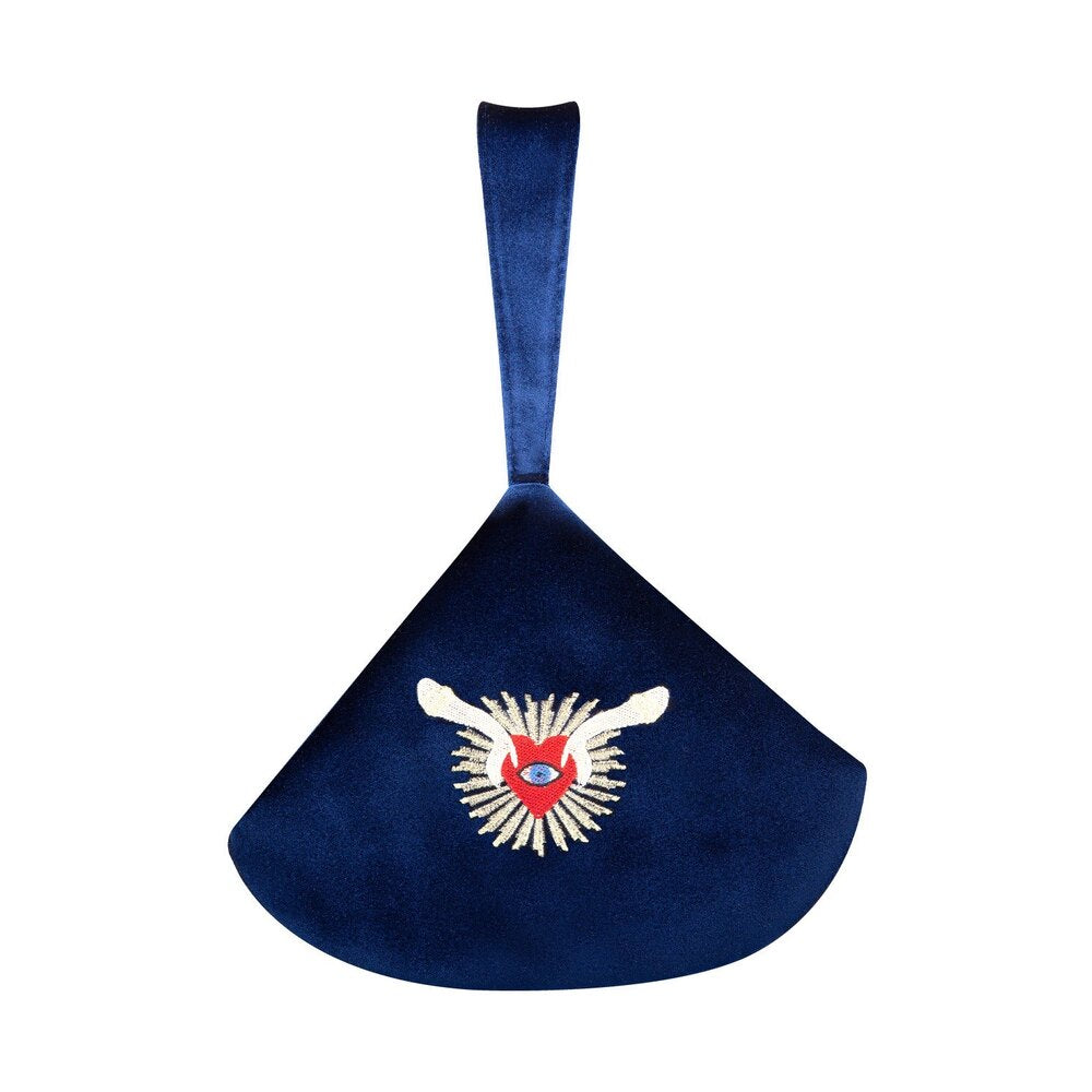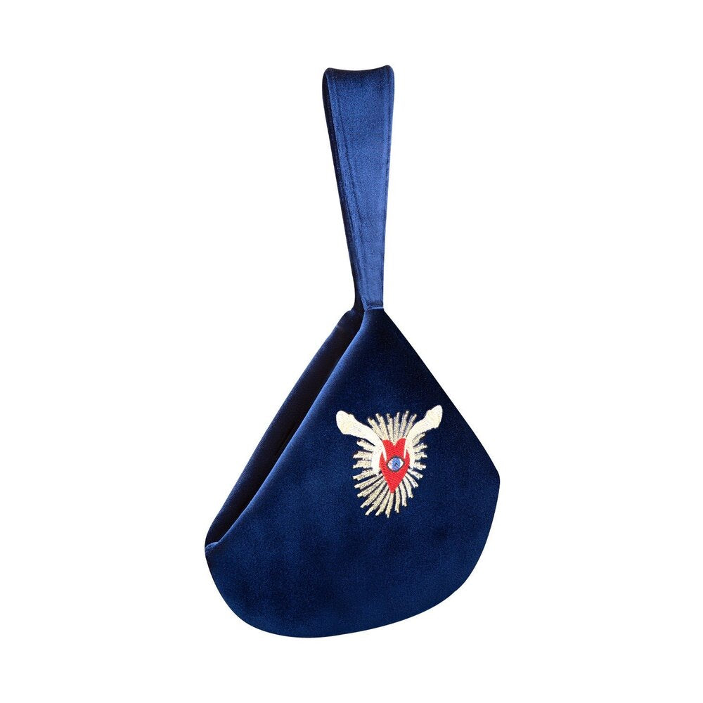 Kadife üstüne nakış detaylı mini çanta. Fermuar ve çıtçıt detayı ile kapanır.