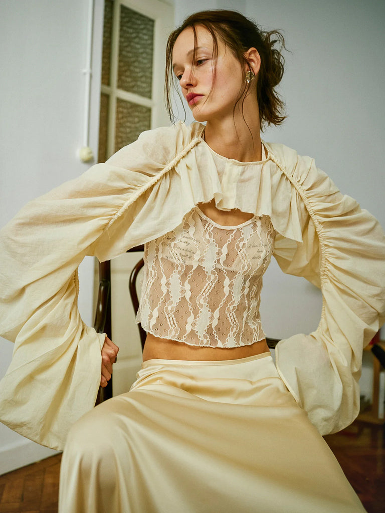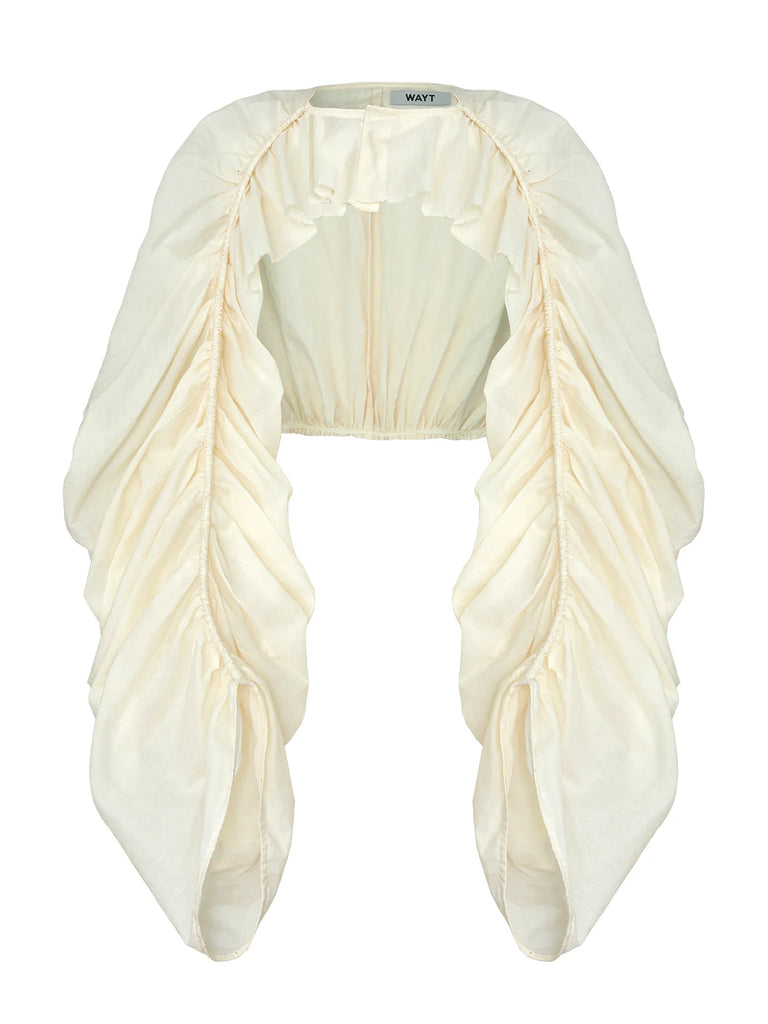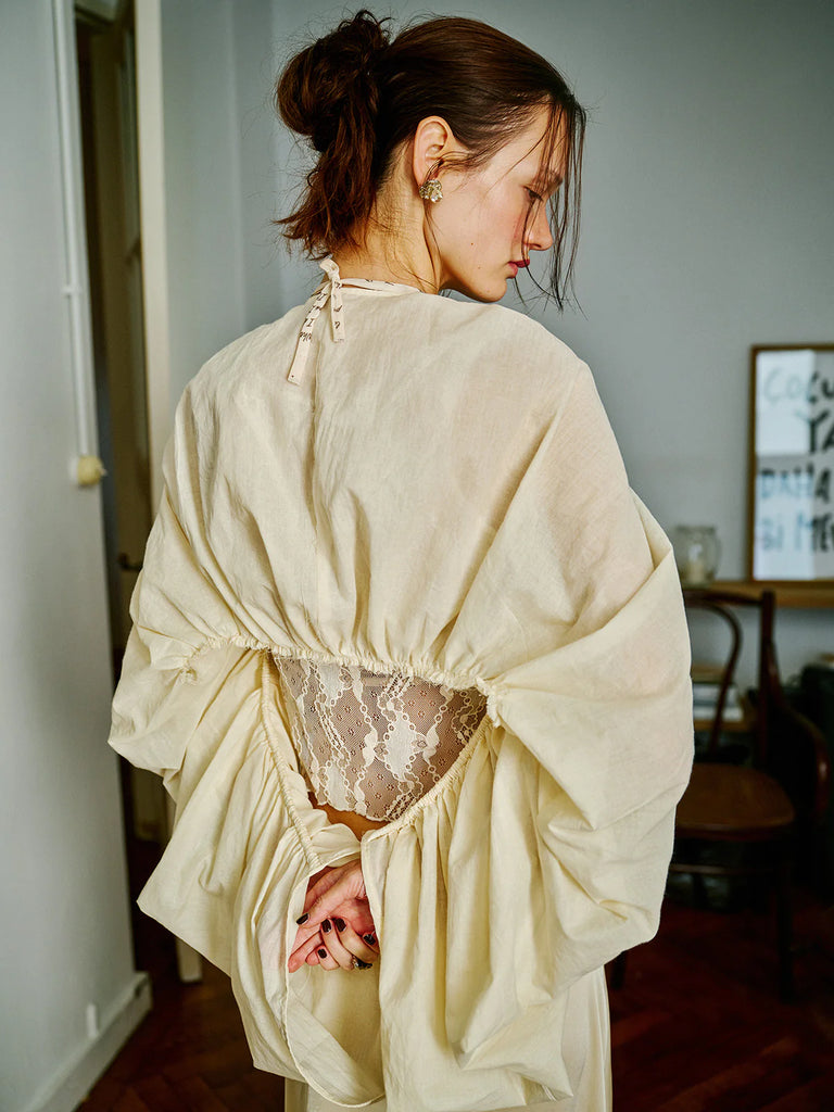 Cabriole, Barok ihtişamından ilham alan dramatik bir siluetin modern bir yorumu. Romantik, güçlü ve dikkat çekici bu parça; hafif dokuma pamuk kumaşı ve heykelsi balon kollarıyla hacimli ve teatral bir görünüm sunuyor. Avangard tavrıyla, gösterişin kendine özgü bir dili olduğunu hatırlatan bu tasarım; stilinize karakter katacak, editorial etkisi yüksek bir katman.