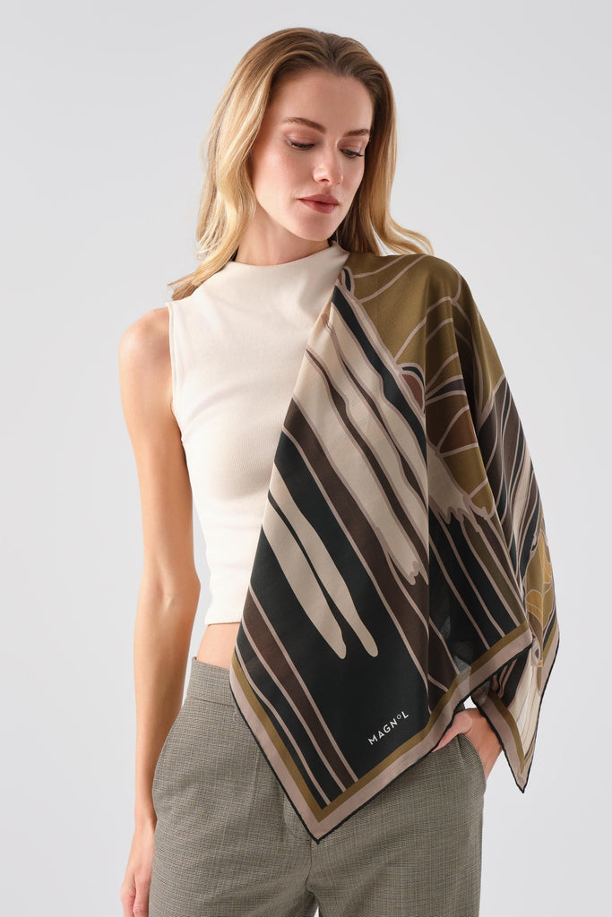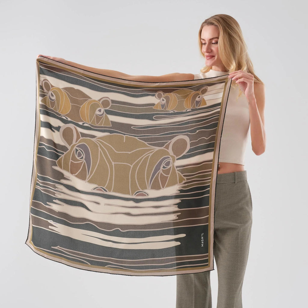 • Tüm tasarımlar elle çizilmiş, daha sonra dijital olarak kumaş üzerine basılmıştır. • Bu fular sınırlı sayıda üretilmiştir. • Kenarları elde dikilmiştir. • Boyut:90 X 90 cm • %100 İpek, cdc
