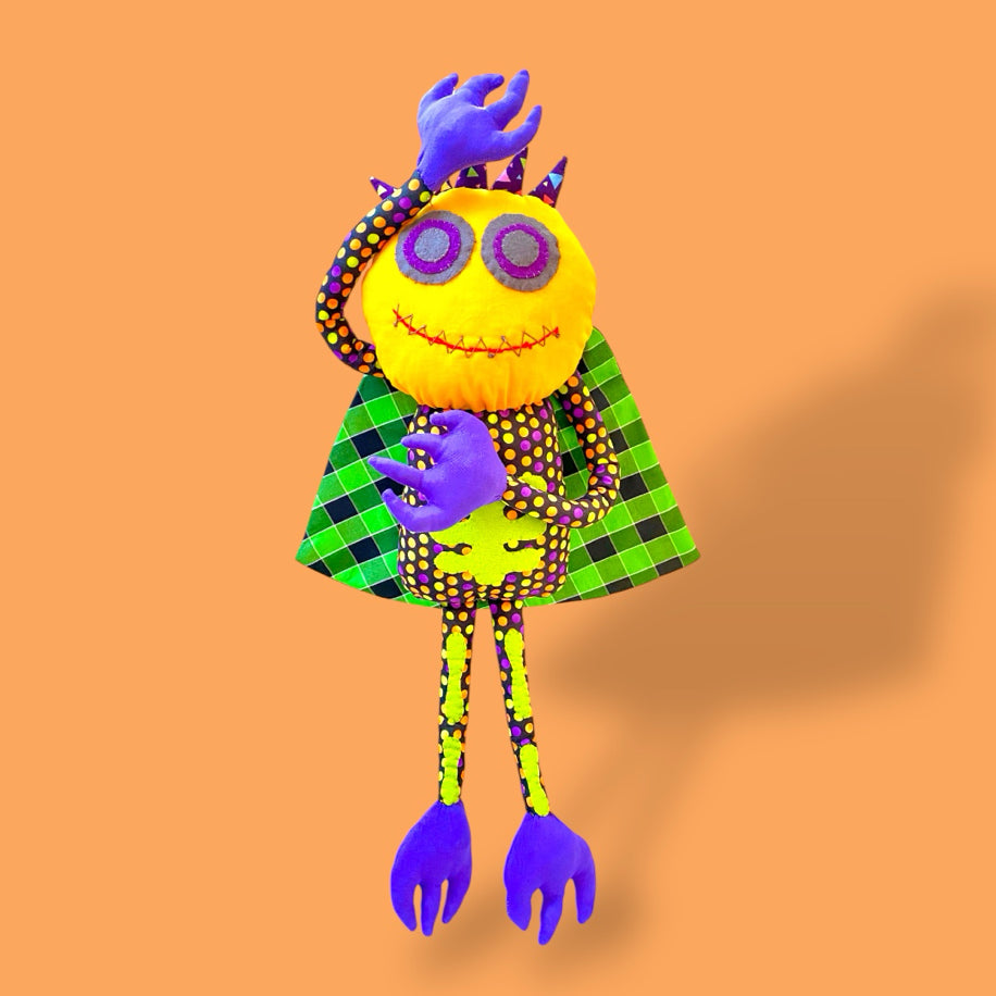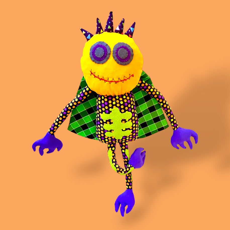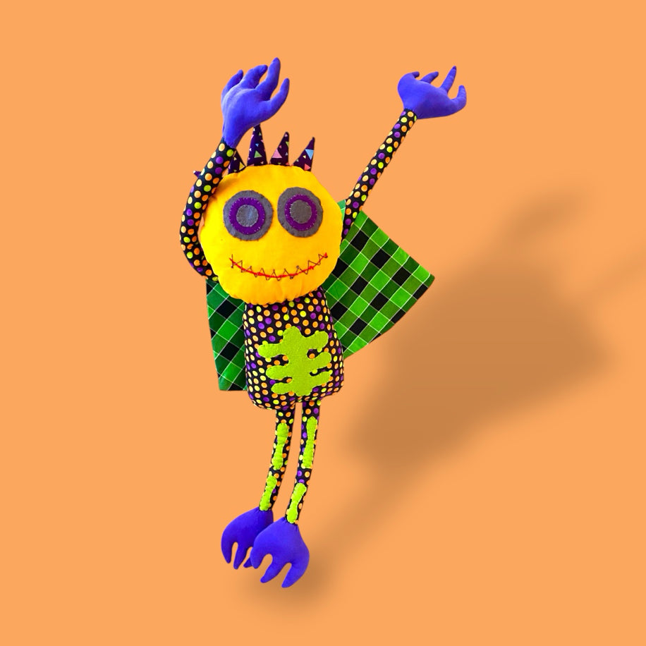 Retro stil sıkı iskelet tulumu, kafasındaki büyülü tacı ve dışı pırıltılı içi puantiye sihirli pelerini ile tüm arkadaşlarını korkutmayı planlıyor. Lütfen kalbini kırmayın ve korkmuş gibi yapın.